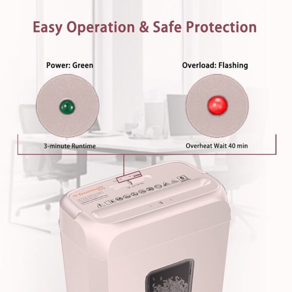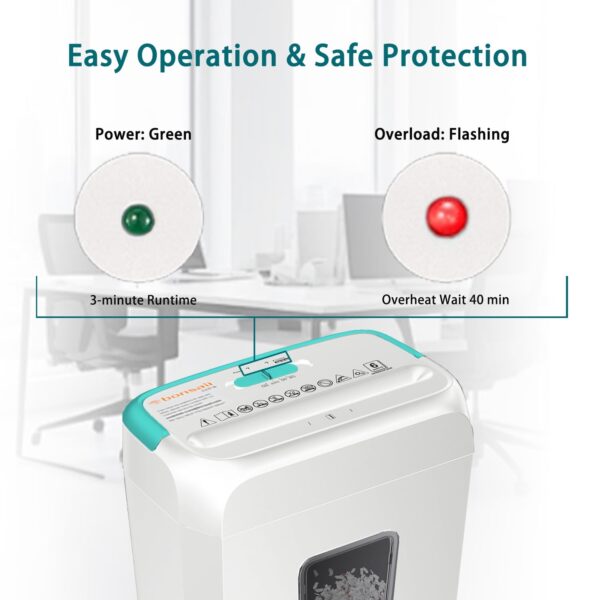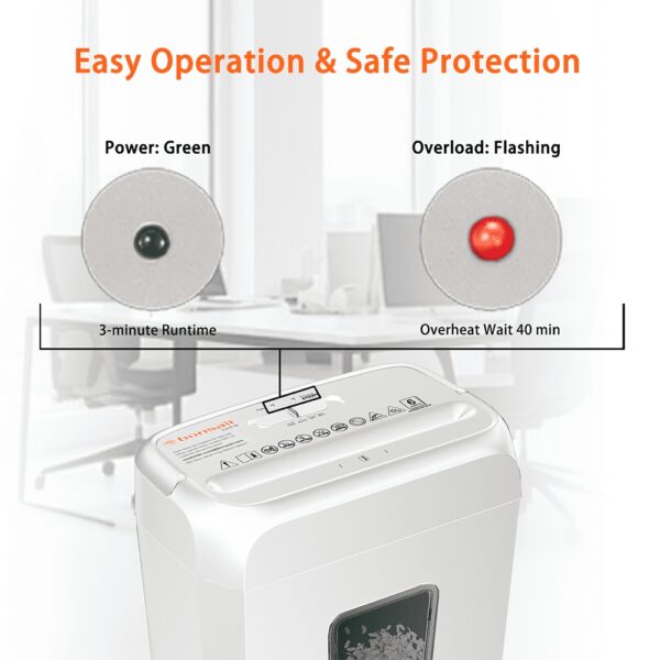 - Easy Operation & Safe Protection: Auto start/stop and manual-reverse functions prevent paper jams. Overheat protection prolongs the shredder’s lifespan and ensures safety.
