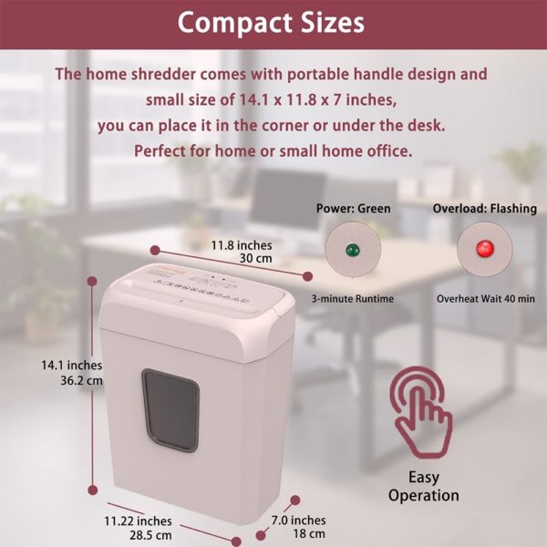 - 3-Minute Continuous Shredding: Can shred about 100 sheets in 3 minutes. Over 3 minutes may cause overheating and automatic shutdown, requiring 40 minutes of cooling.