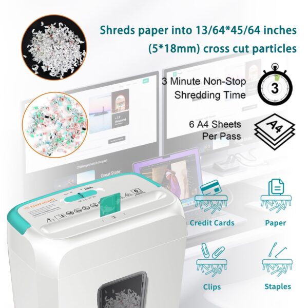 - Crosscut Paper & Credit Card Shredder: Bonsaii home paper shredder can shred up to 6 sheets at once (max 36 sheets per minute) into 5x18mm pieces, handling documents, staples, credit cards, and junk mail without plastic film.
