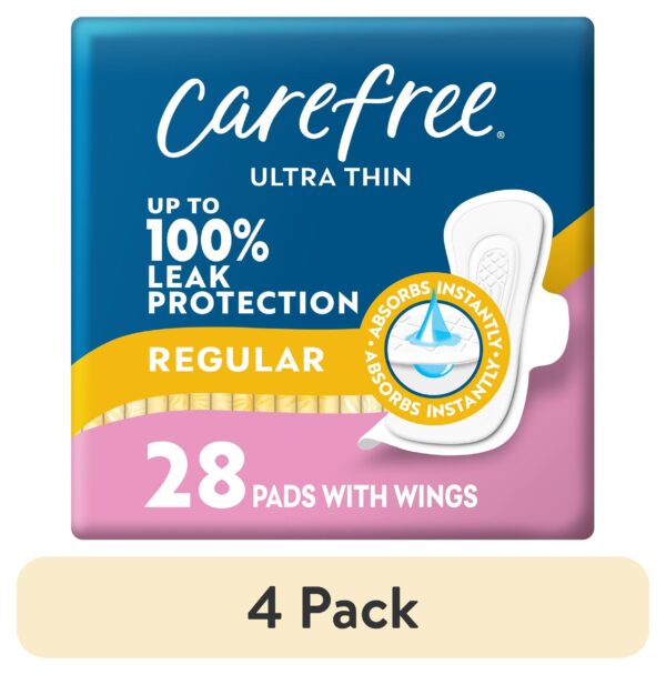 Carefree Ultra Thin Pads with Wings, Regular Absorbency, 28 Ct