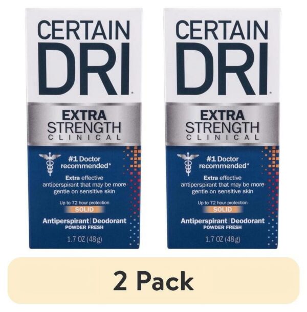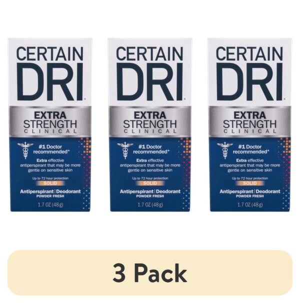 Certain Dri is the #1 over-the-counter brand that doctors recommend for their patients with excessive sweating and is one of the original clinical antiperspirant brands. Certain Dri offers three levels of protection to help sufferers manage their excessive perspiration. Certain Dri Extra Strength Clinical Antiperspirant + Deodorant is extra-effective and may be more gentle on sensitive skin. The active ingredient Aluminum Sesquichlorohydrate in Certain Dri Extra Strength Clinical has been shown to provide up to 72-hour protection for people with hyperhidrosis.