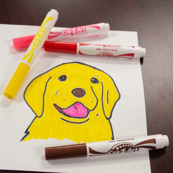 Markers feature super bright colors! Add color to a variety of projects with this versatile set of classic. They are designed with broadline tips, which effortlessly create thick or thin lines depending on the angle of the marker. This 64-count marker set includes super bright, basic and bold colors. Nontoxic and safe for little artists ages 3 and up. The ink easily washes off skin with soap and water, and will not stain most fabrics. Great value for teachers too. Be “always creative” with Car-Z-Art