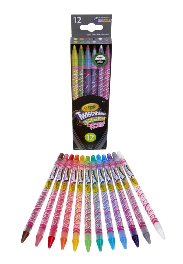 - CRAYOLA TWISTABLES: Features 12 Twistable Colored Pencils in Bold & Bright colors!