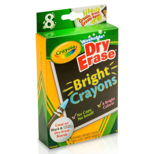 - Set includes an EZ Erase Mitt, builtin sharpener, and 8 odorless dryerase crayons
