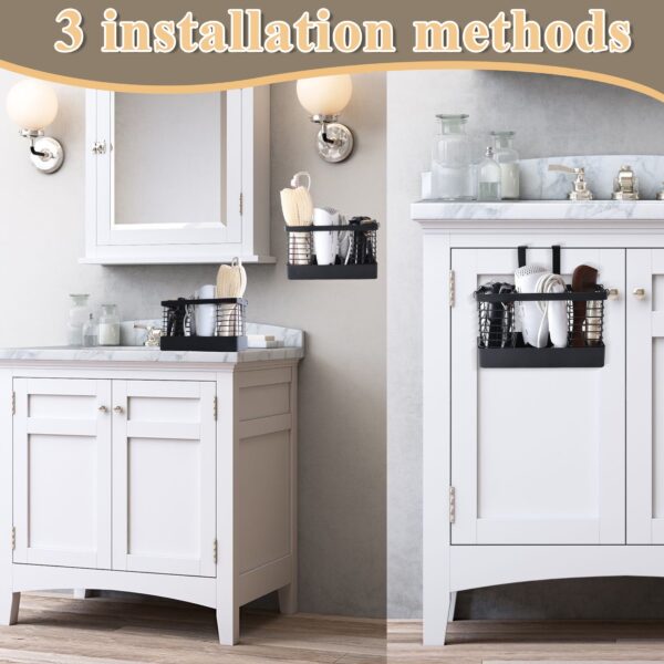 - [Easy to Use] This hair tool organizer can be hung directly on cabinet doors with a thickness of less than 1 inch (please make sure the gap between the cabinet door and the door frame is greater than 1/8 inch before installation); it can be installed without drilling holes with glue or reinforcement; it can also be placed directly on the countertop for immediate use. This hair dryer holder is easy and quick to install, allowing you to use the hair dryer organizer in 1 minute.