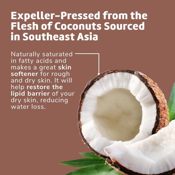 - Expeller-pressed coconut oil that hydrates and softens dry skin
