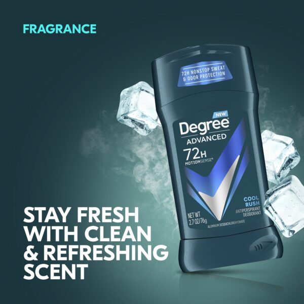 - Degree Men Advanced Protection Cool Rush Antiperspirant Deodorant provides up to 72 hours of protection against sweat and body odor