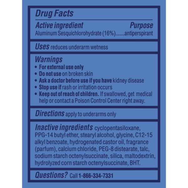 | Primary Ingredient | Aluminum Zirconium Tetrachlorohydrex GLY |