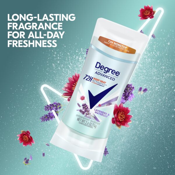 - NONSTOP FRESHNESS: Degree Lavender & Waterlily Advanced Protection Antiperspirant Deodorant keeps you feeling fresh and clean with 72-hour sweat and odor protection.