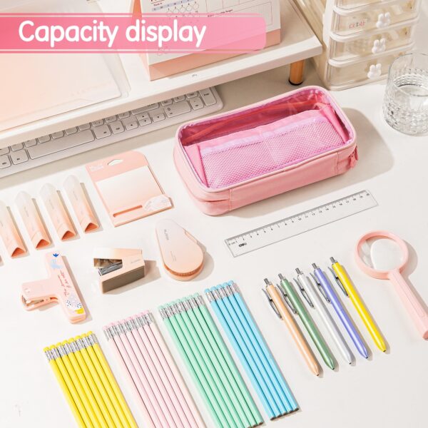 10 reviews for Deli Foldable Pencil Pen Case Big Capacity Pencil Pouch Large Pencil Bag Makeup Bag for Teen Boys Girls School Students, Pink