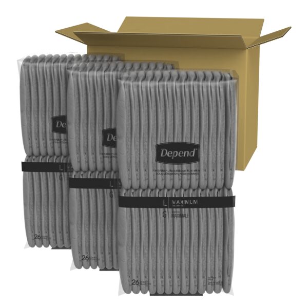 Depend FIT-FLEX Men’s Incontinence Underwear provides Your Best Comfort and Protection Guaranteed.* Available in a masculine grey color, this disposable underwear is ideal for bladder incontinence. Material absorbs instantly, locking in wetness and odors, helping you stay dry and worry-free as you go about your day. The SureFit waistband helps keep the brief in place and provides a comfortable, underwear-like fit. The form-fitting elastic strands give the underwear a smooth, discreet fit under clothing, unlike bulky adult diapers. Incontinence underwear is unscented, latex-free and lotion-free. Underwear is soft, quiet and breathable.Depend for Men in Maximum Absorbency is available in three sizes – size small/medium (26-34 inch waist), size large (35-43 inch waist) and size extra-large (44-64 inch waist). Depend incontinence supplies always ship in a discreet box and are FSA-eligible in the U.S. Packaging may vary from images shown.*If you’re not completely satisfied with the fit of your Depend, we can help. Purchase by 3/1/21. Mail in by 3/15/21. Online access required. Limit 1 per household. Original receipt/UPC required. Restrictions apply. See www.depend.com/guarantee for details.