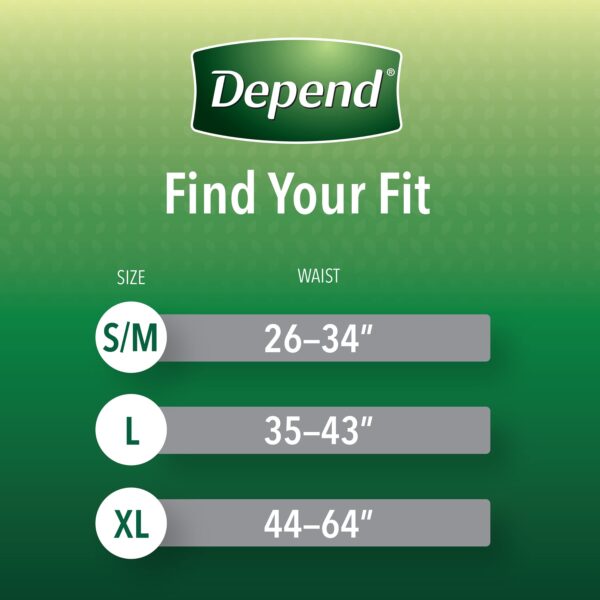 Depend Fit-Flex Men’s Incontinence Underwear keeps you protected from bladder leaks with DryShield Technology, providing you all day comfort, guaranteed.* Absorbent material instantly locks in wetness and odors, providing long lasting dryness and a more comfortable** experience. Designed with the SureFit waistband to help keep it in place and form-fitting elastic strands to provide a discreet fit under clothing, unlike bulky adult diapers. This disposable underwear is available in a masculine grey color. Unscented underwear is soft, quiet and breathable. Depend FIT-FLEX for Men with Maximum Absorbency is available in three sizes: size small/medium (26-34” waist), size large (35-43” waist) and size extra-large (44-64” waist). Skip the store and order your Depend adult incontinence supplies to be shipped to your doorstep in a discreet box. HSA/FSA-eligible in the U.S. *If you’re not completely satisfied with the fit of your Depend, we can help. Purchase by 3/31/22. Mail in by 4/30/22. Online access required. Limit 1 per household. Original receipt/UPC required. Restrictions apply. See Depend website for details.**vs. the leading bargain brand