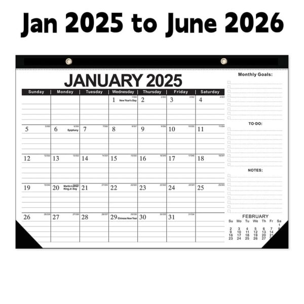 Desk Calendar for Jan 2025 – June 2026, Monthly Wall Calendar for Home or Office, 17″ x 12″