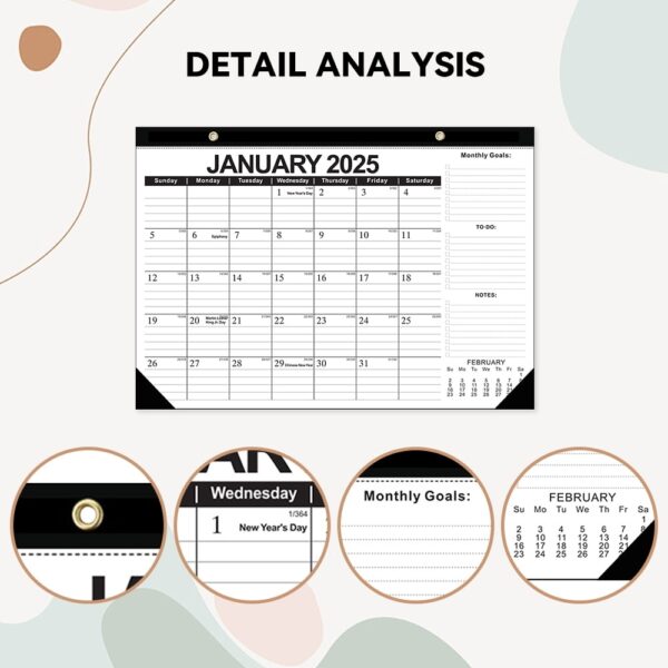 Crafted from premium thick paper, this desk calendar 2024-2025 prevents ink bleeding and ensures clean, tidy pages for a seamless writing experience. The optimal paper quality guarantees a durable and enjoyable planning tool.