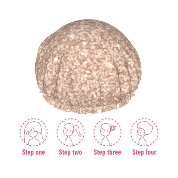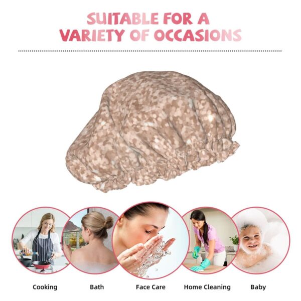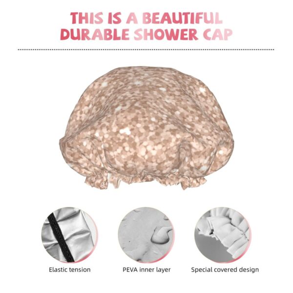 Disketp Beige Sparkling Glitter Shower Caps,Reusable Shower Cap For Women, Double Layer Waterproof Hair Cap, Large Size For All Hair Lengths,For Girls Spa Home Salon Use