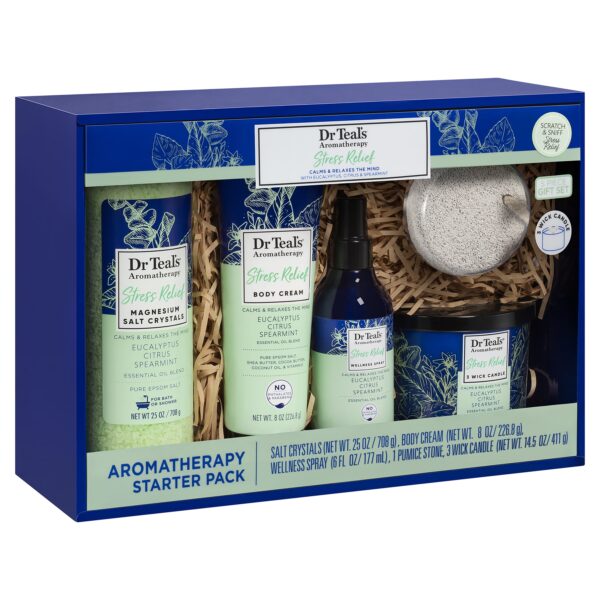 - Dr Teal’s Aromatherapy Stress Relief Starter Pack, Eucalyptus, Citrus and Spearmint, 5 Pieces