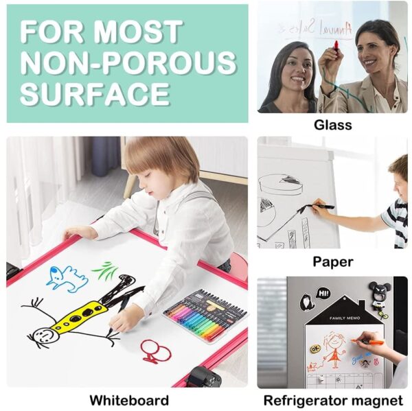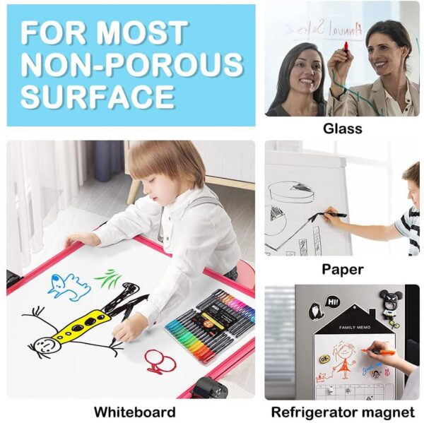 - WIPE EASILY: Writing smoothly and drying quickly with washable ink can easily wiped off from whiteboards, glass, mirror, and most non-porous surfaces with any cloth or eraser.