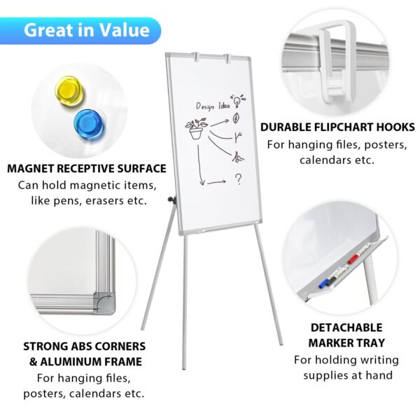 10 reviews for Easel Whiteboard – Maxtek Magnetic Portable Dry Erase Board 36 x 24, Tripod Height Adjustable, Flipchart Easel Stand White Board for Office or Teaching at Home & Classroom