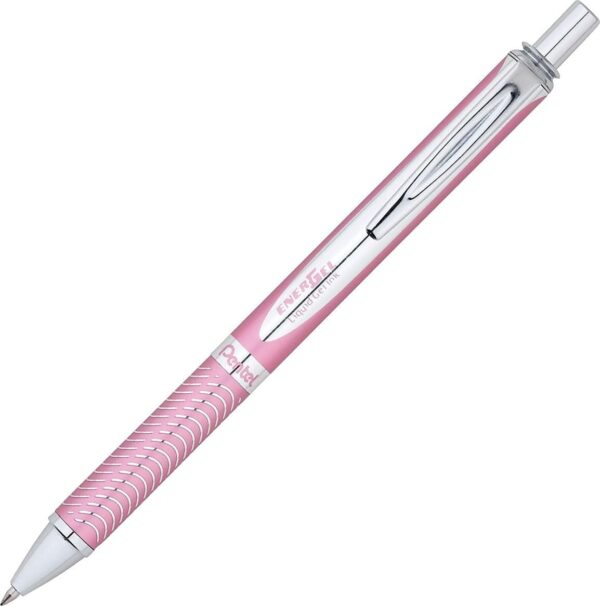 The Pentel® EnerGel Alloy RT retractable liquid gel pen is an exquisitely designed writing instrument for those who want to make a statement. High performance ink technology – No Smears, No Smudges, No Globs. Distinctive, textured grip provides greater writing comfort. 0.7mm metal tip writes medium lines. Pink Barrel. Pen Sub-Brand & Product Family: EnerGel® Alloy RT; Pen Type: Gel Pen; Pen Style: Retractable; Pen Tip Type: Conical.