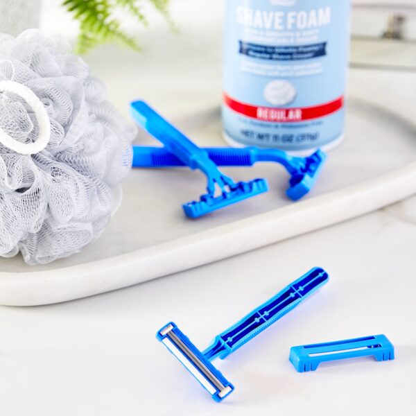 A smooth, clean shave can be yours with Equate The Essential 2 Blade Disposable Razors. These razors feature a pivoting head designed to give you that close shave you’ve been looking for. The double-coated blade edge and lubricating strip ensure ultimate comfort and the long handle gives you a great grip so you can control the blade with ease. With 12 disposable razors per pack, you’ll always have one on hand when you need it at home or on the go. Say farewell to five o’clock shadow when you pick up a pack of Equate The Essential 2 Blade Disposable Razors.