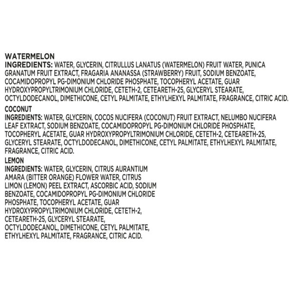 - 3-pack includes: 8 watermelon, 8 coconut, and 8 lemon pre-moistened towelettes
