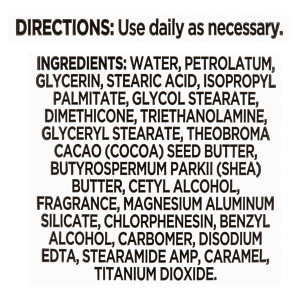 Treat your skin to the ultimate spa day experience with Equate Beauty Moisture Cocoa Butter Care Lotion. This ultra-rich, luxurious lotion gives your skin a healthy glow and helps to keep your tan burnished in summer and your skin satiny-smooth in the winter. It helps even out skin tone and blends in scars and stretch marks. Pamper your legs after shaving, soothe dry elbows and knees, and make every inch of your skin touchably soft with the healing power of cocoa butter. Add a squirt from the handy pump top into other lotions and creams for a thicker, creamier, and more protective version with moisturizing benefits that won’t quit, or smooth over your lips for a moisture-sealing barrier that leaves them youthful and silken. Shield your skin against the ravages of summer sun and winter winds with Equate Beauty Moisture Cocoa Butter Care Lotion.