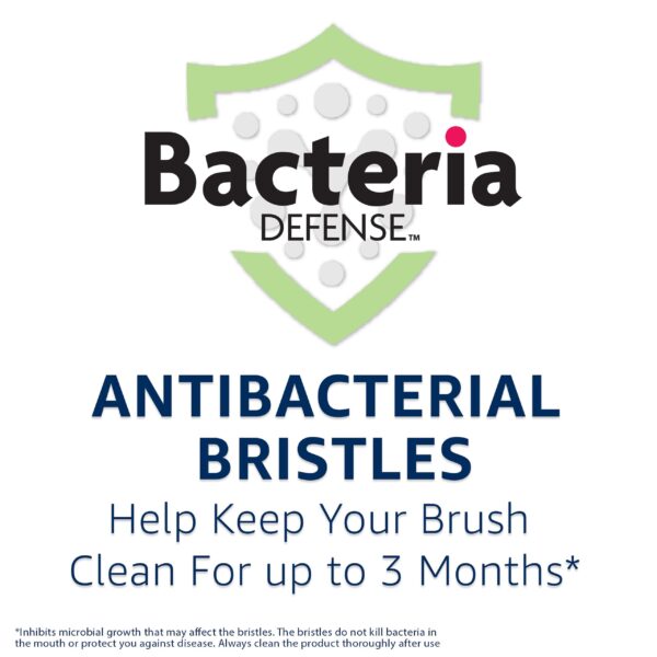 - BACTERIA DEFENSE BRISTLES: Help keep the brush clean for up to 3 months (inhibits microbial growth that may affect the bristles. The bristles do not kill bacteria in the mouth or protect you against disease. Always clean the product thoroughly after use)