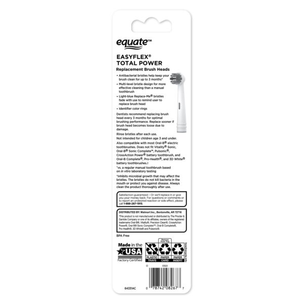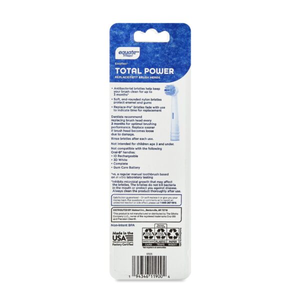 - Equate EasyFlex TotalPower Replacement Toothbrush Brush Heads for Adults, 2 Count