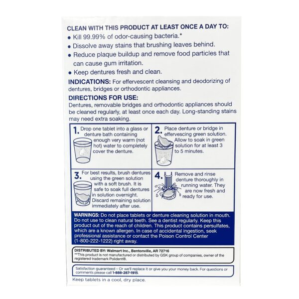 10 reviews for Equate Effervescent Antibacterial Denture Cleanser Tablets, Mint Fresh, 84 Count, Compare to Polident® Antibacterial Denture Cleanser