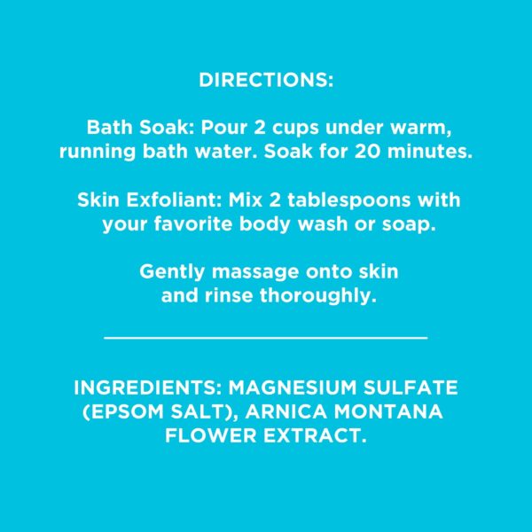 As an aging cancer survivor with brittle skin I am aware that I bruise easily. Yet I’m still active and therefore overdo and find myself with aches and pains. Taking a bath in epsom salts help. The additional benefit of arnica helps and seems to reduce the bruising I get on my legs and forearms from active gardening, biking and horseback riding. Salts dissolve fast. This is as good as the Drs brand for my skin. As always I can get this in my region from Walmart when ordering groceries. Easy to buy and use!