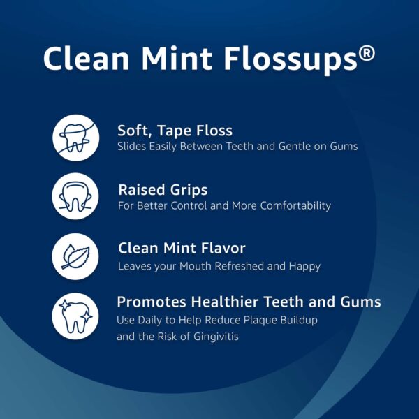 - Features built-in tongue cleaner and a raised grip for control and comfort while flossing between your teeth