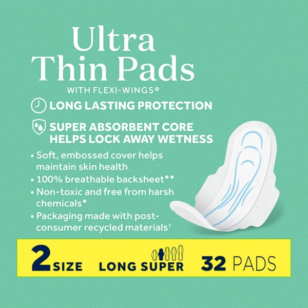 - Equate Long Ultra Thin Pads with Flexi-Wings, Unscented, Super, Size 2 (16 Count)