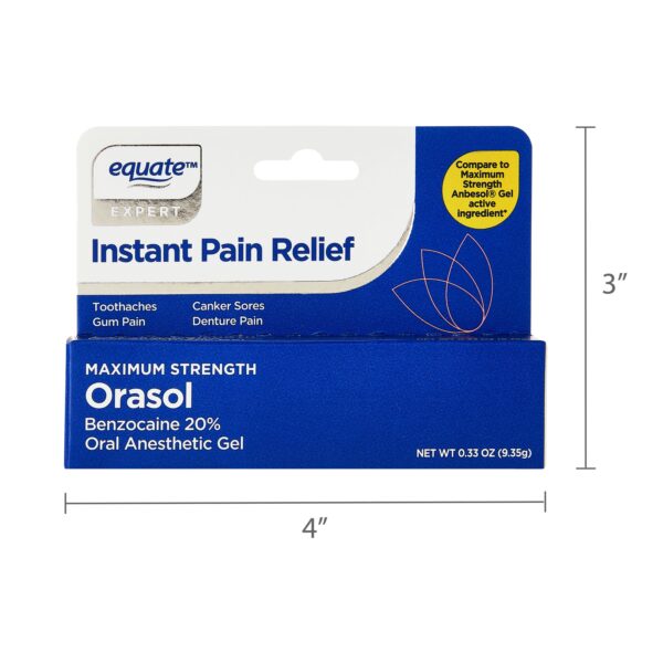 Equate Maximum Strength Orasol Oral Anesthetic Gel with 20% Benzocaine for Instant Pain Relief, 0.33 oz, Compare to Maximum Strength Anbesol® Gel Active Ingredient
