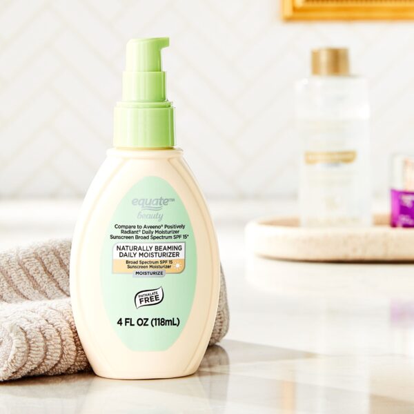 Equate Naturally Beaming Broad Spectrum Daily Moisturizer Sunscreen, SPF 15, 4 fl oz