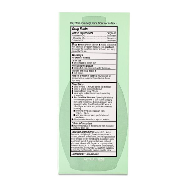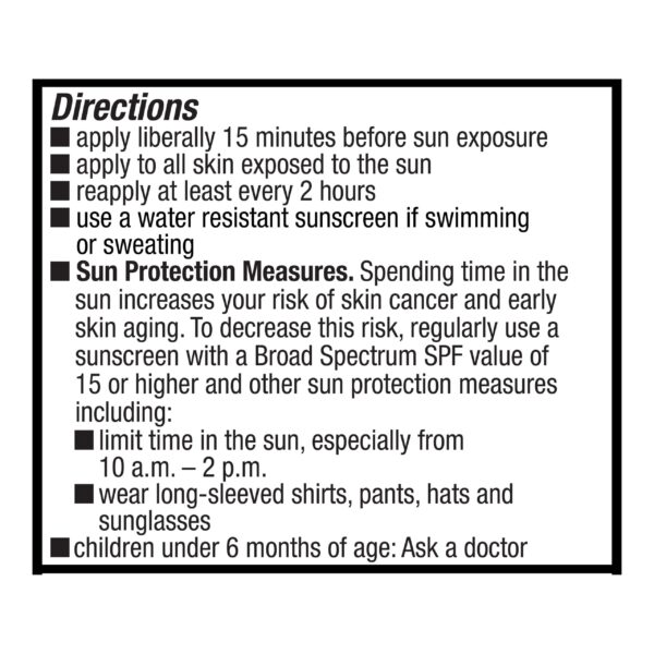 - Broad Spectrum SPF 15 UVA/UVB sunscreen