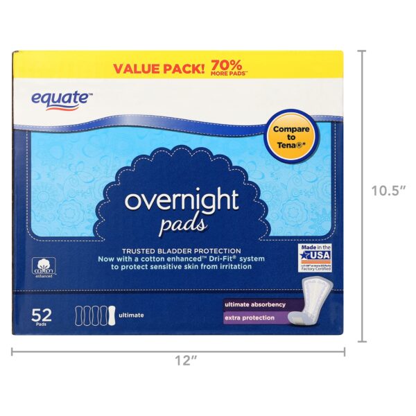 - Equate Women’s Overnight Ultimate-Extra Coverage Incontinence Pads, 120 Count