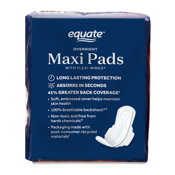 - Equate Overnight Maxi Pads with Flexi-Wings, Unscented, Size 4, 26 Count