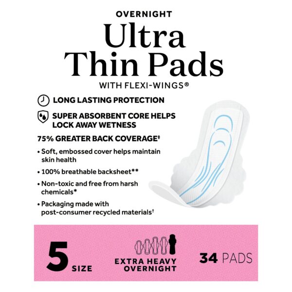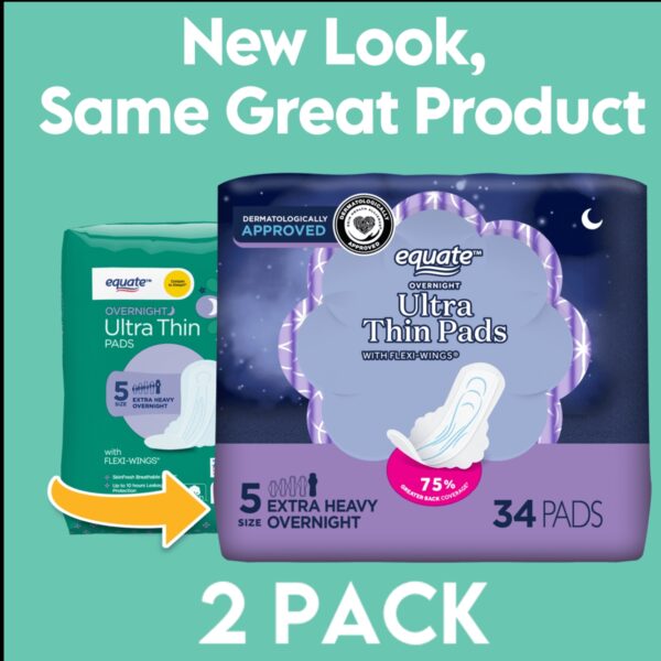 - Equate Ultra Thin Pads with Flexi-Wings, Unscented, Extra Heavy Overnight, Size 5 (34 Count per package)