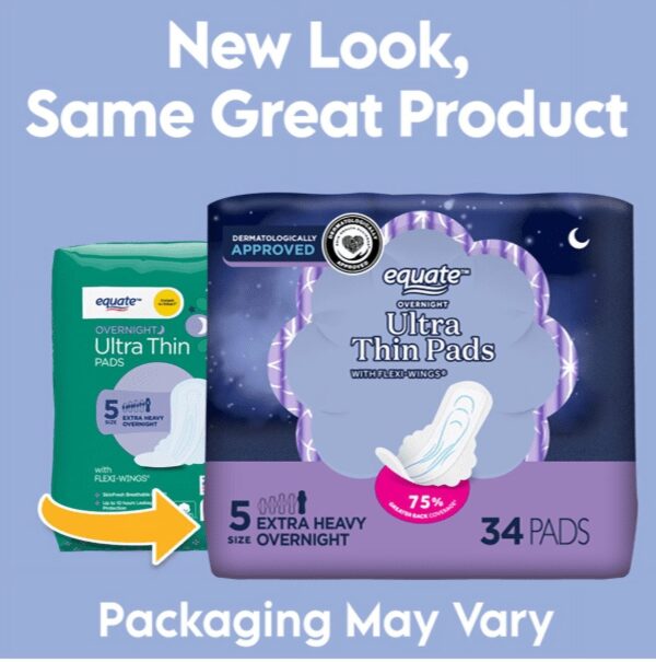 - Equate Ultra Thin Overnight Pads with Flexi-Wings Size 5, 46 Count