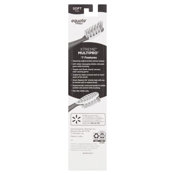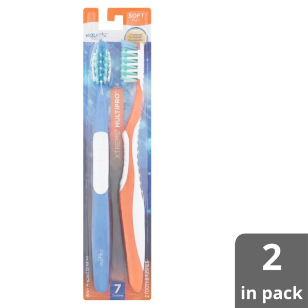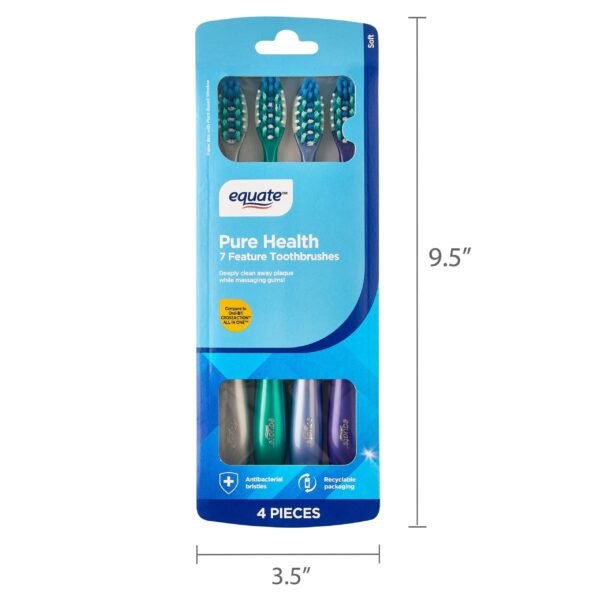 - Equate Pure Health Manual Soft Bristle Toothbrush with Tongue and Cheek Cleaner, 4 Count