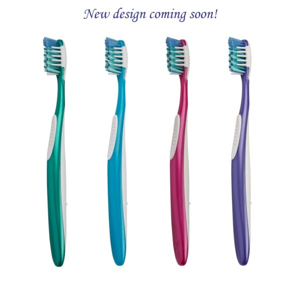 I love these toothbrushes. They are firm but soft enough for tender gums. I really love the tongue and cheek cleaner on the other side. I prefer these over the name brand. They are reasonable and my go to brushes. Highly recommend.