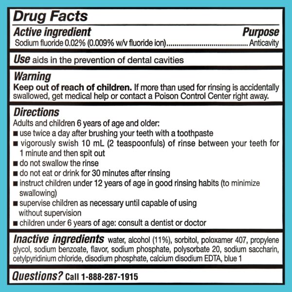 - Vigorously swish two teaspoons of rinse between your teeth for one minute after brushing and then spit out