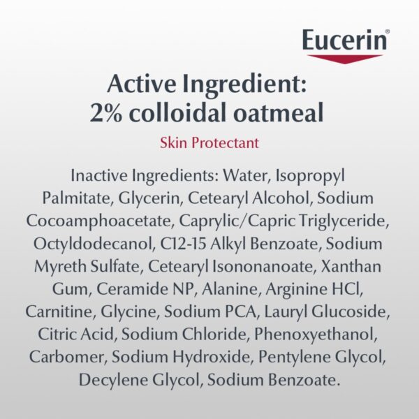 Eucerin Eczema Relief Cream Body Wash is made with a gentle, non-foaming and moisturizing body wash that helps to calm the dry, itchy skin associated with eczema. This gentle Eucerin body wash for eczema is specifically designed for sensitive skin and enriched with Colloidal Oatmeal to help protect and soothe. For sufferers of eczema, it is essential to protect the moisture barrier and eliminate potential irritants. That’s why our eczema wash is based on clinically-proven Eucerin Eczema Relief moisturizer technology. This eczema body wash is free of soap, fragrance, dyes and parabens. *Based on Beiersdorf’s assessment of OmniMarket Service data reported by Circana, LLC of Total US Multi-Outlet on the Hand & Body Lotion Category, categorized for eczema, for the 52-week period ending 2-25-2024