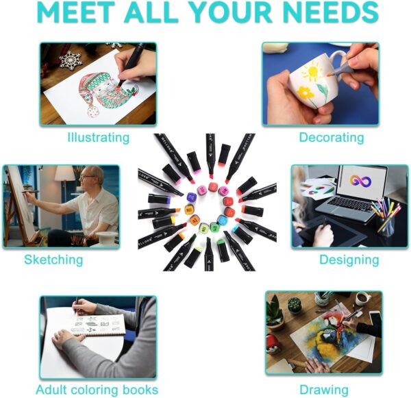 - [PORTABLE & COLOR-CODED ALCOHOL MARKER DESIGN] The color-coded marker caps allow for easy organization and quick color identification. Additionally, markers for adults come with a long-lasting zippered carrying case for convenient transport to wherever you desire, making them especially suitable for travel or outdoor work.