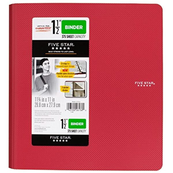 2 reviews for FIVE STAR Polypropylene, Letter Size, 1.5 In, 3 Round Ring Binder, Red