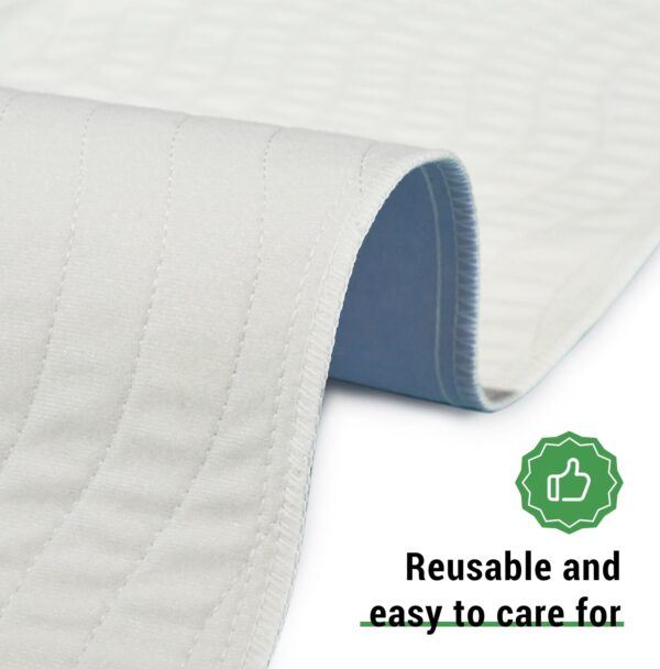 Very happy with the reusable underpads. Was purchased for a family member who lives in a skilled nursing facility. In addition to providing absorbency, the underpad can serve as a draw sheet for repositioning. The pads have already been washed several times in an industrial machine in hot water and are holding up nicely. Since the pads touch the individual’s fragile skin, I tested first to see if they were comfortable to the touch for this person. They said it was. Very reasonable price for the quality. I highly recommend.