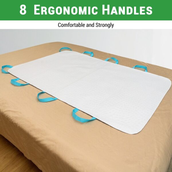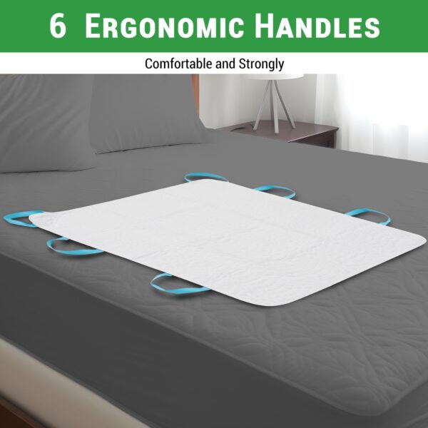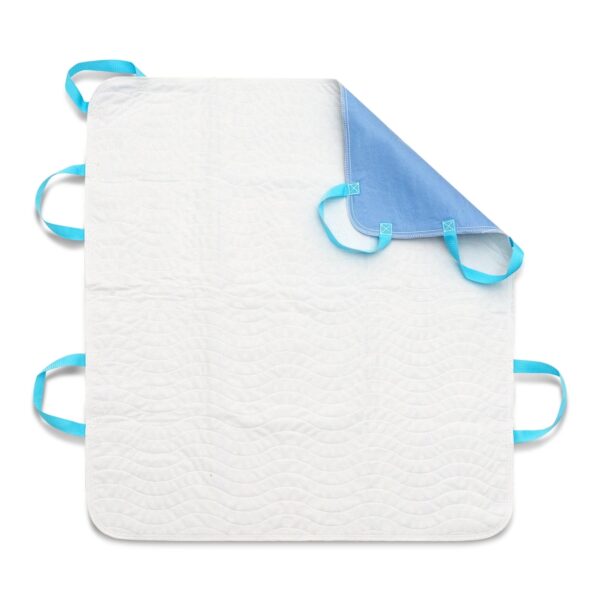 Usage instructions: Place the bed pad on top of the bed sheet with the white side facing up. When removing, gather all four corners and lift while supporting the bottom of the pad.