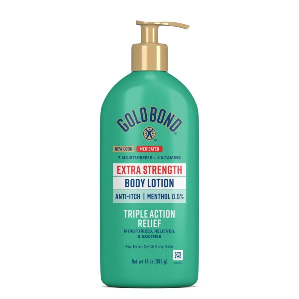 Got extra dry skin? Feel extra itchy? Get GOLD BOND® Medicated Extra Strength Body Lotion. We’ve taken our five-moisturizer formula up a few notches to deliver even more of the soothing, cooling, skin-calming relief you desperately need. For insect bites, sunburns, or minor skin irritations, keep it on hand. Or anywhere else it’s needed. GOLD BOND® Extra Strength Medicated Body Lotion goes beyond ordinary body lotions because it is uniquely formulated to relieve the itch plus soothe & moisturize dry skin! GOLD BOND® Extra Strength Body Lotion temporarily relieves the pain and itching associated with minor skin irritations, minor burns, insect bites, sunburn, minor cuts, and scrapes.