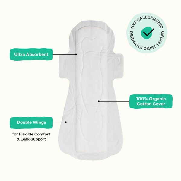- 100% Organic Cotton Cover and ultra absorbent wood pulp core