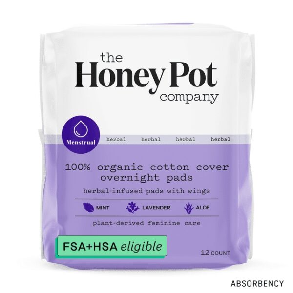 - Honey Pot Herbal Overnight Pads with Wings, Organic Cotton Cover, 12 ct.